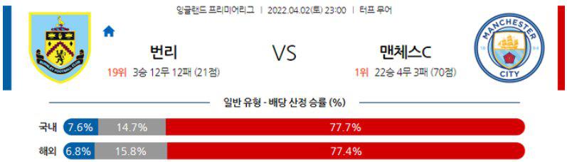 【프리미어리그】 4월 2일 번리 vs 맨체스터 시티