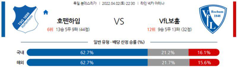 [분데스리가] 4월 2일 호펜하임 vs VfL 보훔