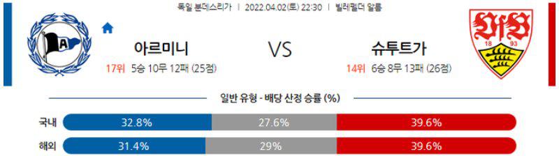 [분데스리가] 4월 2일 아르미니아 vs 슈투트가르트