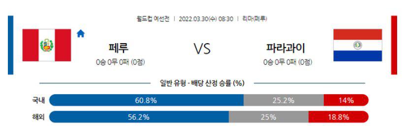 파라과이가 3골을 넣기는 했으나, 찬스를 만들어내는 빈도가 적다는 한계는 있다. 다만 양 팀 모두 공격적으로 나올 가능성은 충분하므로 과감하게 다득점 경기를 예측할 수 있다. 파라과이의 전적을 고려하면 승부에서는 페루의 승리를 점치겠다.