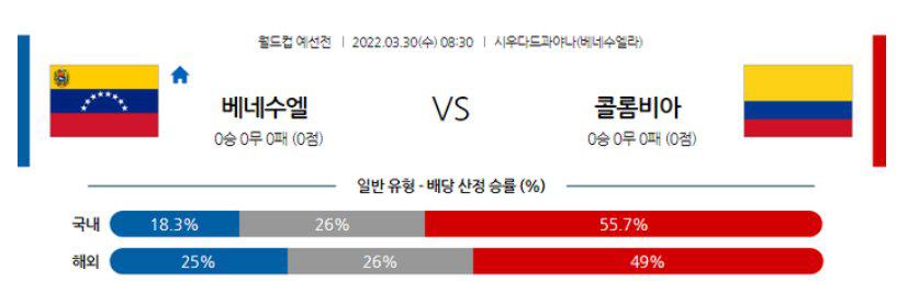 【월드컵예선】 3월 30일 베네수엘라 vs 콜롬비아● 베네수엘라 (피파 랭킹 58위 / 팀 가치 : 82.20m 파운드)