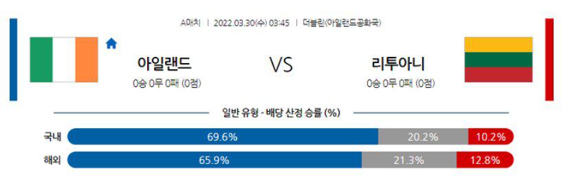 【A매치친선】 3월 30일 아일랜드 vs 리투아니아