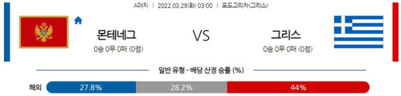 【A매치친선】 3월 29일 몬테네그로 vs 그리스