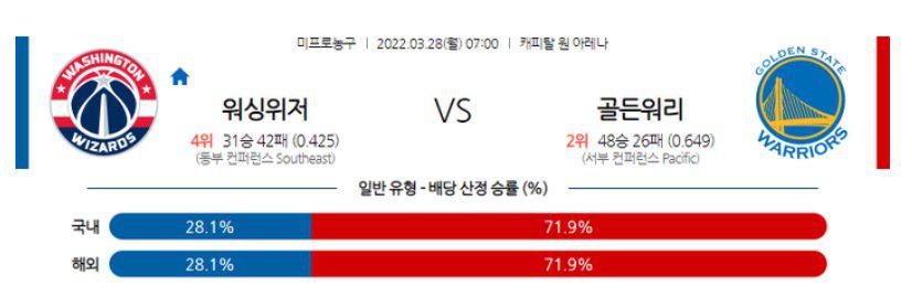 【NBA】 3월28일 워싱턴 vs 골든스테이트