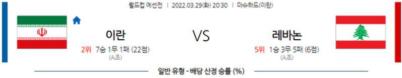 카나니자데간(DF / 알 알리)이 징계에서 돌아오는 수비진 상황은 그나마 낫다. 공격진에 비해 약점이라는 수비도 현재까지 9경기 4실점으로 선방하고 있다. 대여계좌 레바논이 득점을 성공할 가능성도 낮지만, 성공하더라도 의외로 이라크에게 지난 예선에서 2무를 기록하는 등 이란이 침대 축구에 약한 모습을 보여주는 터라 빠른 페이스의 다득점 경기는 아닐 것으로 예상하고 있다.