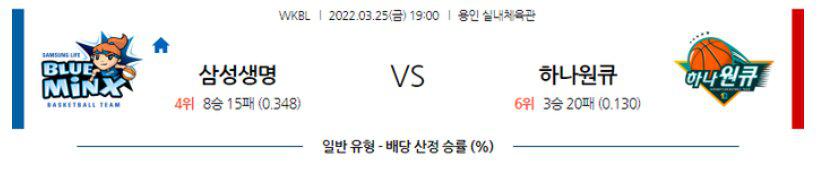PO진출을 위해서는 반듯이 승리가 필요한 삼성생명의 강한 동기부여에 베팅 포커스를 맞춰야 한다. 삼성생명 승리 가능성을 추천 한다.