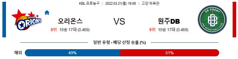 [KBL] 3월 21일 고양 오리온 오리온스 vs 원주 DB 동부