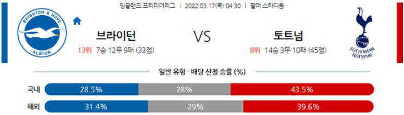【프리미어리그】 3월 17일 브라이턴 앤 호브 알비온 vs 토트넘 홋스퍼 FC