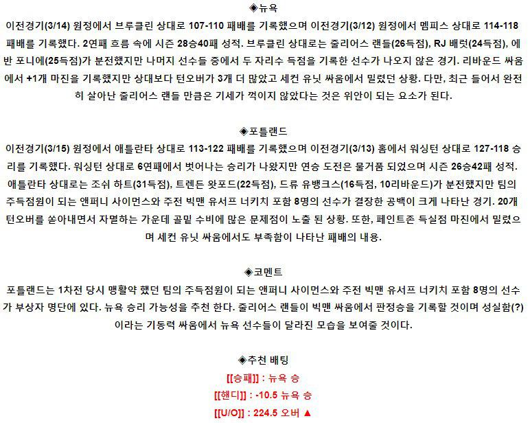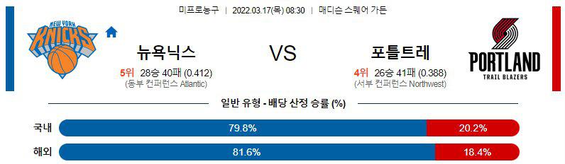 【NBA】 3월17일 뉴욕 vs 포틀랜드